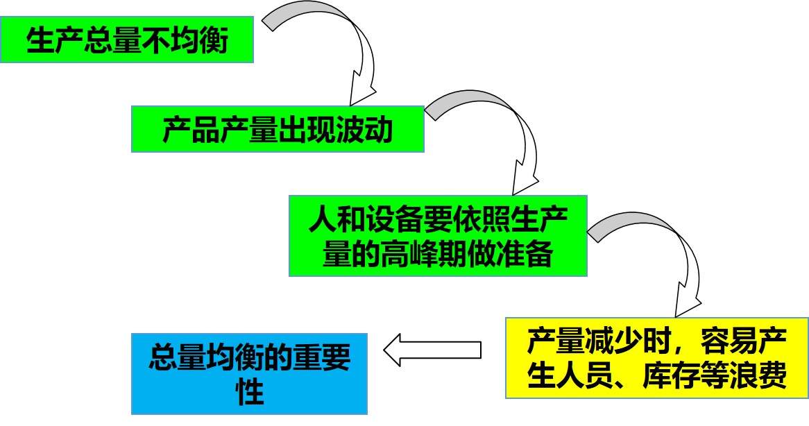 定義:總量均衡就是將一個單位期間內(nèi)的總訂單量平均化,即將連續(xù)兩個單位期間的總生產(chǎn)量的波動控制到最小程度。