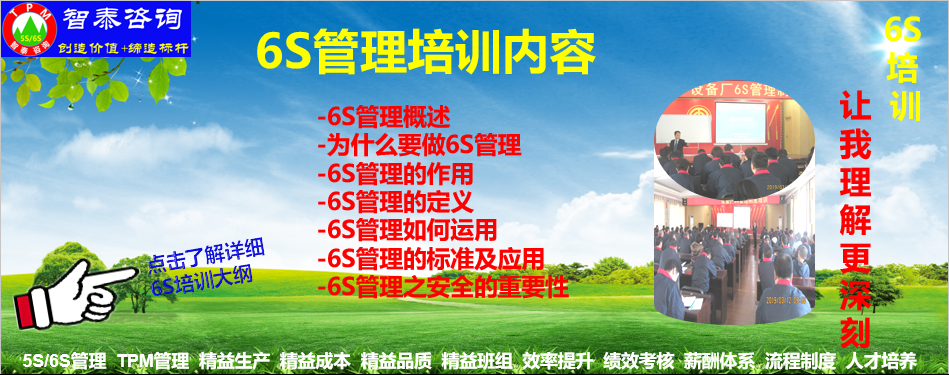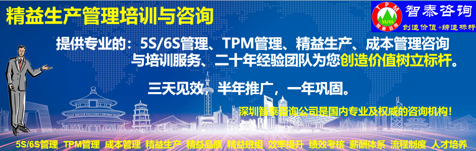 智泰咨詢機(jī)構(gòu)提供專業(yè)的5S管理,6S管理,TPM管理,精益生產(chǎn)管理的咨詢與培訓(xùn)服務(wù);我們有一批從事企業(yè)管理咨詢20年以上的資深顧問,他們行業(yè)經(jīng)驗(yàn)豐富,成功案例多,是真正落地的咨詢機(jī)構(gòu)!...
