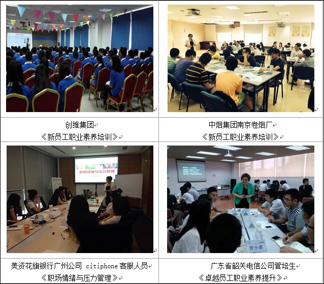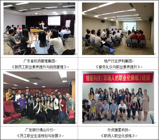 大型上市公司:碧桂園集團(tuán)、創(chuàng)維集團(tuán)、順豐速遞、歐派家居、得潤(rùn)電子、宜信集團(tuán)、友誼集團(tuán)新員工職業(yè)化課程20期;