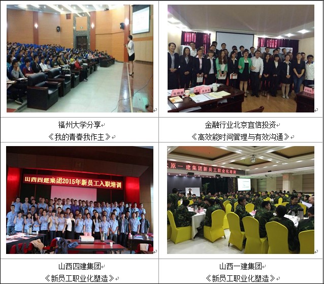 從高校講師到上市公司核心管理人員,期間汪顏老師被國(guó)內(nèi)多所高校選聘為大學(xué)生職業(yè)生涯規(guī)劃導(dǎo)師,32歲完成職業(yè)生涯的又一次轉(zhuǎn)型,成為一名商業(yè)講師,專注于員工和團(tuán)隊(duì)自我效能提