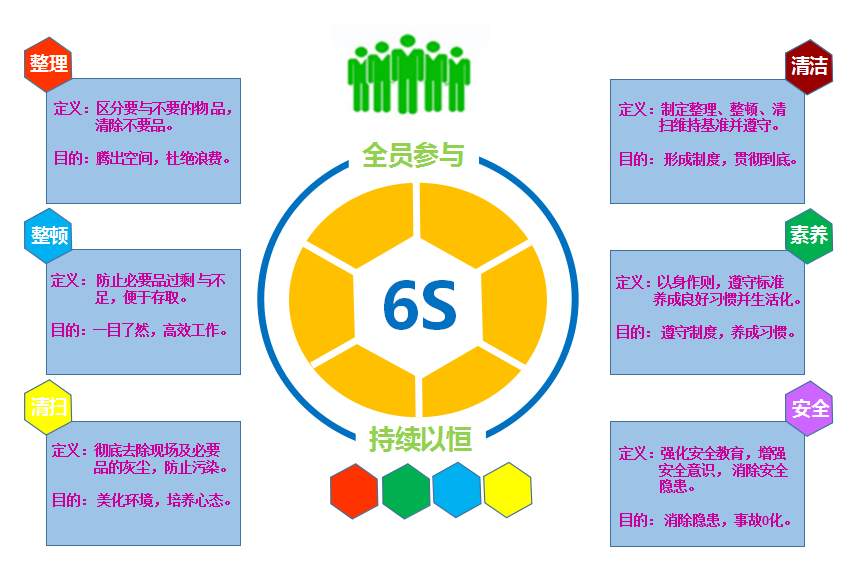5S咨詢公司中對于5S管理的解釋是最早起源于日本,指的是在生產(chǎn)現(xiàn)場中對人員、機器、材料、方法、環(huán)境等生產(chǎn)要素進行高效管理,形成一套企業(yè)現(xiàn)場管理的體系,促進企業(yè)的發(fā)展。1955年,日本5S咨詢公司的宣傳口號為“安全始于整理整頓,終于整理整頓”,當(dāng)時只推行了前2S,其目的僅為了確保作業(yè)空間和安全,后因生產(chǎn)控制和質(zhì)量控制的需要而逐步提出后續(xù)的3S,即“清掃”、“清潔”、“素養(yǎng)”,從而使其應(yīng)用空間及適用范圍進一步拓展,增加“安全”、“節(jié)約”或其它項目成為6S或7S管理......等。