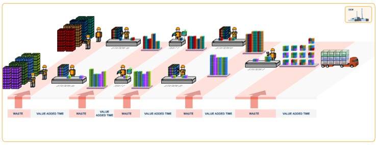 在一些工廠中經(jīng)??梢钥吹?,不同工序的加工設(shè)備之間的距離非常遠(yuǎn),搬運(yùn)到下一道工序,這樣的現(xiàn)象被稱為孤島設(shè)備。“一個(gè)流”生產(chǎn)要求放棄按設(shè)備類型排列的布局,而是按照加工順序來(lái)排列生產(chǎn)設(shè)備,避免孤島設(shè)備現(xiàn)象的出現(xiàn),盡可能使設(shè)備的布置流水線化,真正做到只有“一個(gè)流”。